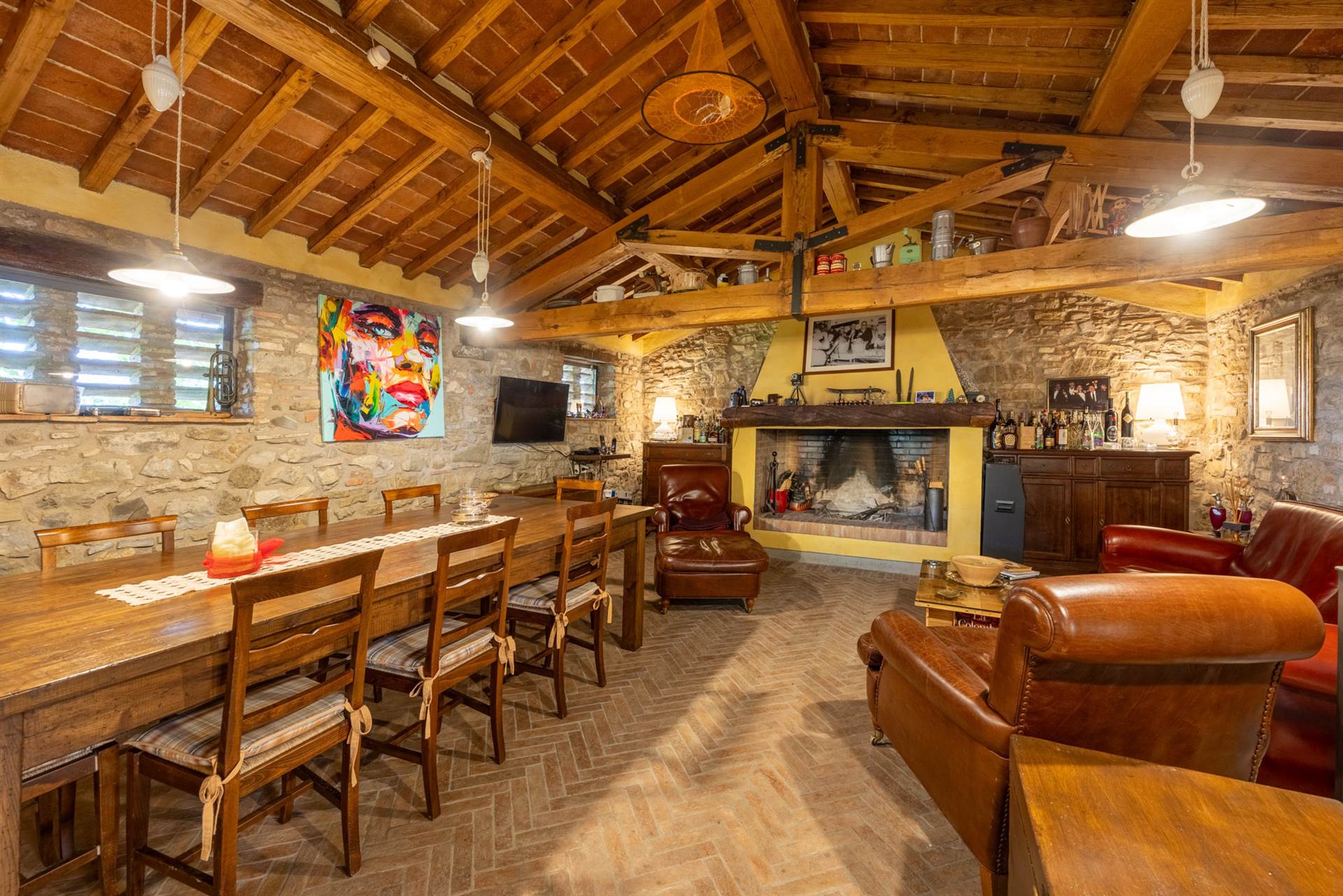 Il grande giardino di oltre 3000 mq è perfetto per momenti di relax all’aperto e offre la possibilità di realizzare una piscina. La dépendance anch’essa in pietra è un vero gioiello, con una taverna attrezzata e un enorme camino accogliente al disotto è stata ricavate un ampia cantina.