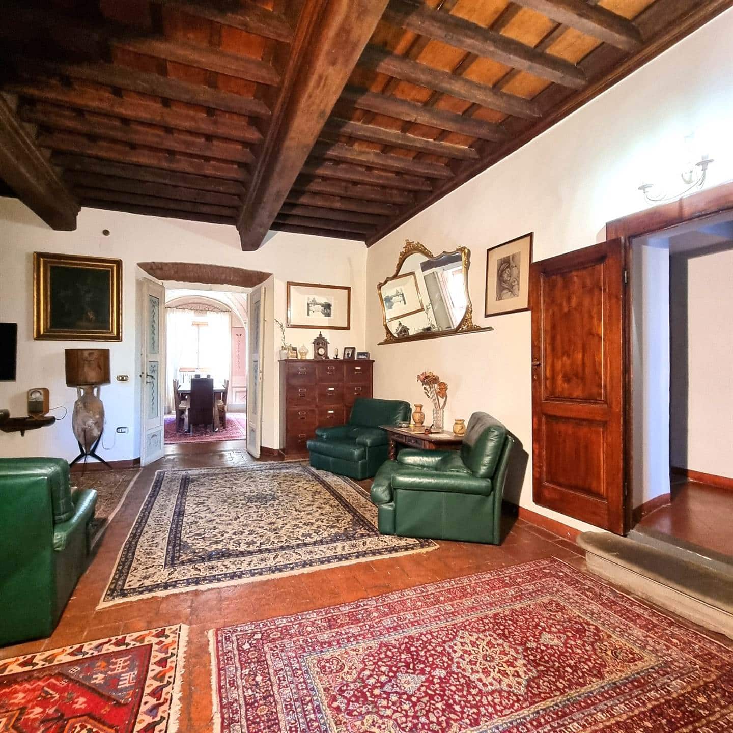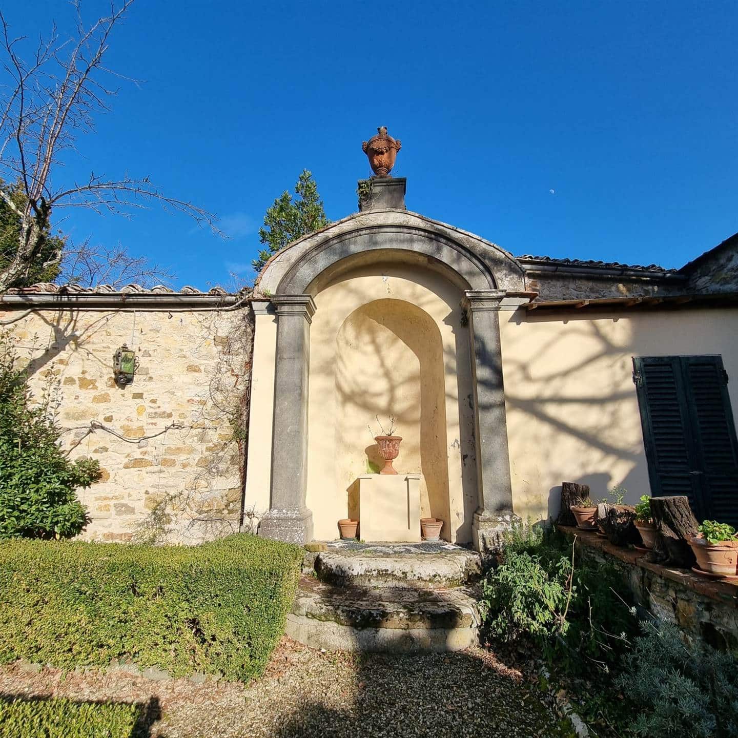 IMPRUNETA – A breve distanza da Firenze, in antica e silenziosa stradina tra gli ulivi, proponiamo porzione di splendida villa rinascimentale del XV secolo sorta attorno ad una antica torre romanica risalente all’anno mille. Negli archivi storici del comune di Impruneta si racconta che la villa, seppur piccola ma molto graziosa, venne acquistata da Lionardo di Buonarrota Simoni (nonno di Michelangelo), per poi passare di mano nel corso dei secoli sino ad arrivare ai giorni nostri. La vicinanza alla città e la quiete del luogo ne fanno un immobile raro. La porzione si articola su un unico piano terreno e ad essa si accede attraverso due cancelli, entrambi carrabili. L’elegante e luminoso salone a volte, decorato a grottesche ci accoglie: da questo particolare salone si accede agli altri ambienti di cui è composto l’immobile che comprende all’ingresso un closet con bagno per gli ospiti, una luminosa cucina abitabile con accesso ad un piccolo giardino fornito di cancello carrabile, un grande locale nel seminterrato adibito a lavanderia e stireria. Vi sono poi altri due salotti con bei soffitti d’epoca a cassettoni di legno: da uno di questi si accede allo splendido giardino all’italiana, ornato da siepi di bosso e dotato di ampie zone pavimentate per allestire angoli di relax e pranzi all’aperto nella bella stagione. Tre grandi camere matrimoniali, ciascuna con bagno privato e locale guardaroba, completano l’elegante proprietà. Riscaldamento autonomo, aria condizionata, 2 posti auto. Ottime condizioni d’uso.