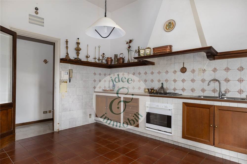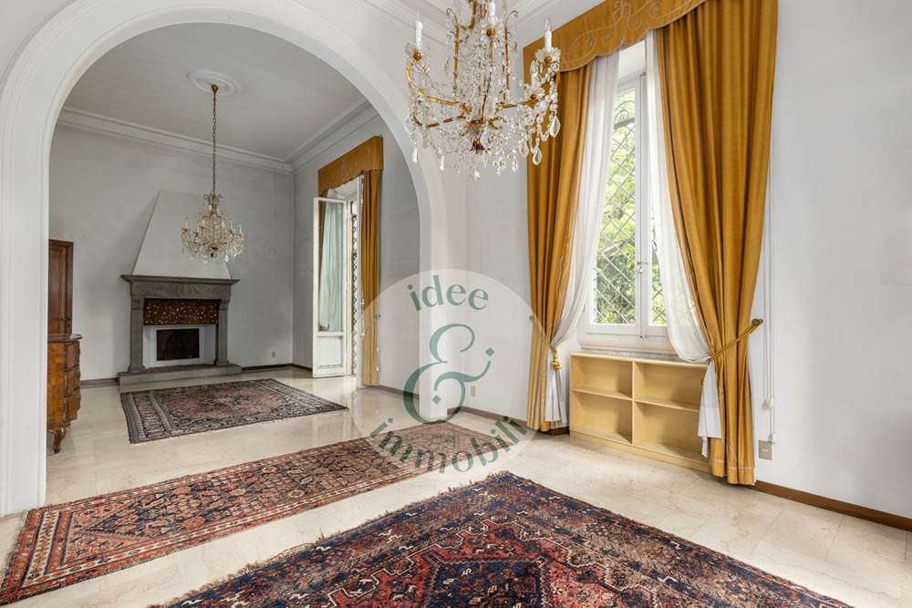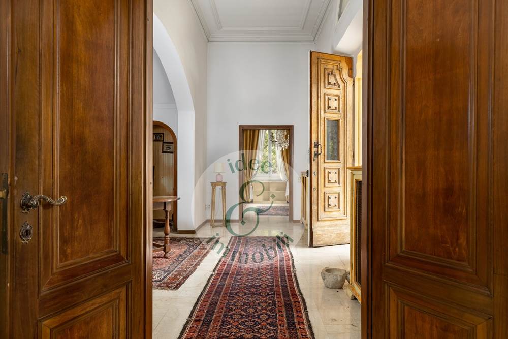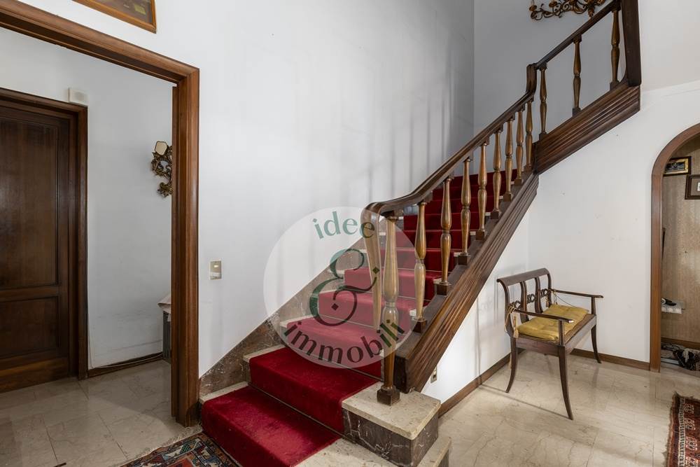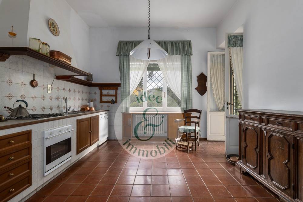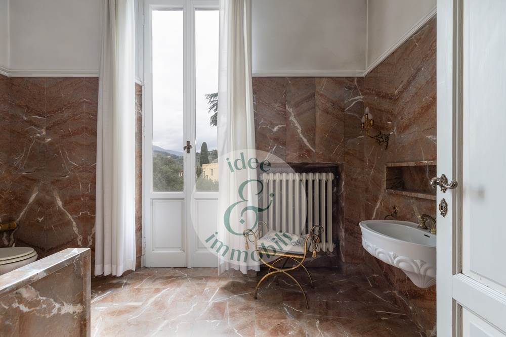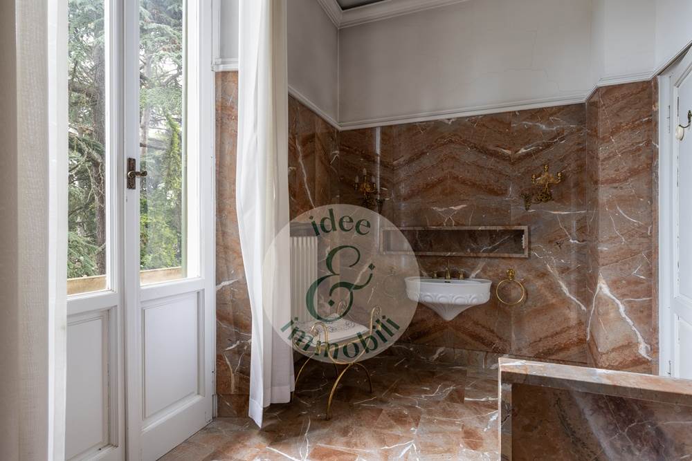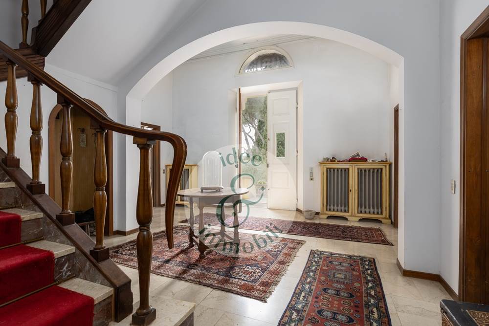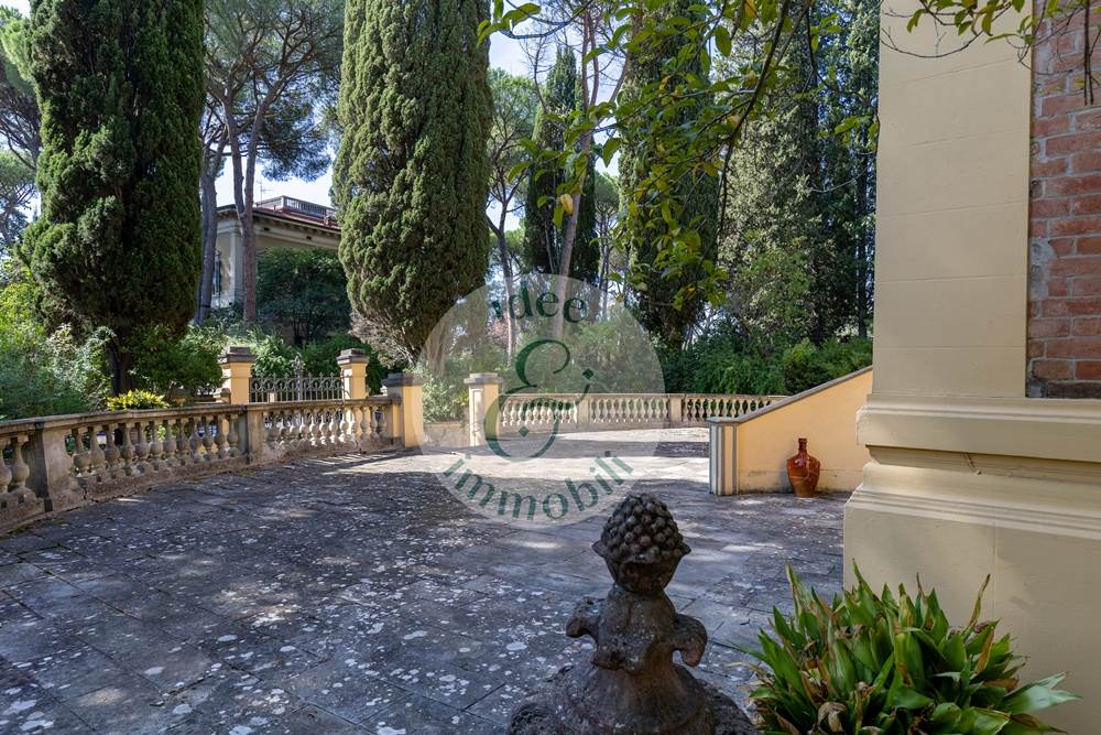 L’immobile è disposto su tre piani fuori terra, oltre il seminterrato. L’ingresso al piano terra avviene tramite una maestosa terrazza in pietra, su cui si affaccia l’atrio. Completano il piano un luminoso salone con caminetto d’epoca, cucina abitabile, bagno, ed altri vani che girano tutti intorno al signorile ingresso. Salendo al piano superiore troviamo cinque ampi vani, una sala da bagno in meraviglioso marmo rosa di Carrara, bagno di servizio e due terrazze. All’ultimo piano la torretta Belvedere che domina il panorama con la sua meridiana d’epoca ed un balcone monumentale. Completa la proprietà l’appartamento del casiere che si trova al piano seminterrato che ha sia accesso tramite scala interna, sia ingresso indipendente dal giardino. Internamente l’immobile necessita di lavori di riammodernamento, mentre tetto e facciate sono stati completamente rifatti di recente.